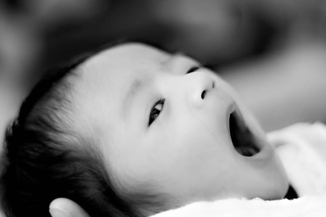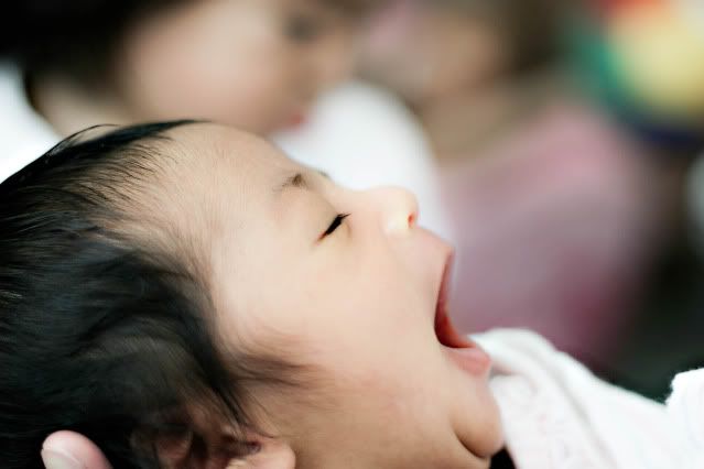 Yesterday afternoon, we went to visit the Arciaga's to welcome the newest member of the family, Santina "Tintin" Arciaga - Born last August 17th. Tightly swaddled in cloth, she was peacefully asleep for the most part except for the occassional yawning. Ate Ina was of course there to watch over her little sister.