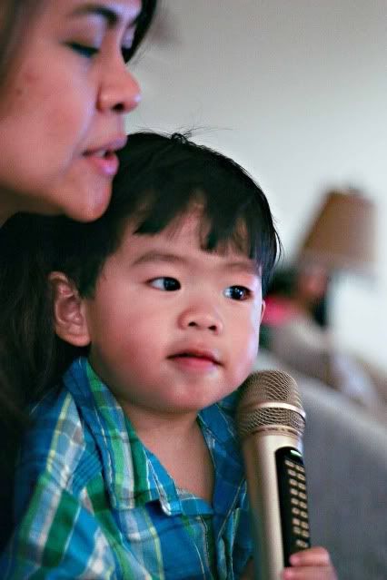 He was fascinated with the mic and the people singing..here with Tita Lorna..